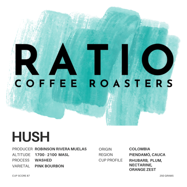 Meet HUSH, an expressive washed Pink Bourbon crafted by producer Robinson Rivera Muelas. Grown at 1700–2100 masl in Piendamó, a vibrant coffee region within Cauca, this lot captures the signature clarity and elegance of high-elevation coffees from Colombia.